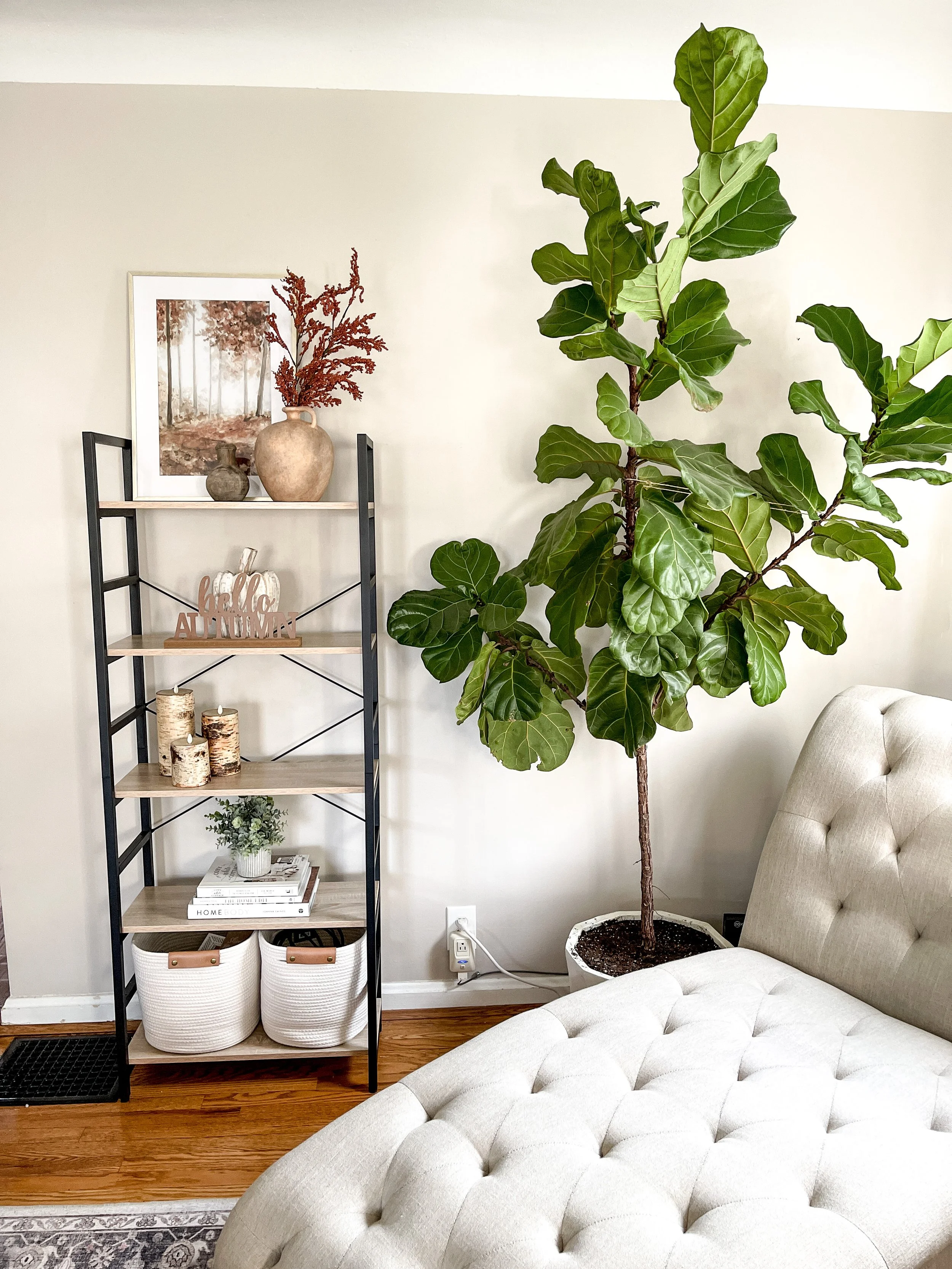 ▪️Greenery - This is a MUST when styling any space in my opinion. Plants give warmth, color, texture and LIFE to any space! Whether you have a green thumb like me or prefer to stick with faux plants, both work! I tend to integrate a little bit of both, as shown here. (Yes, that Fiddle Leaf is real - he’s my baby!)